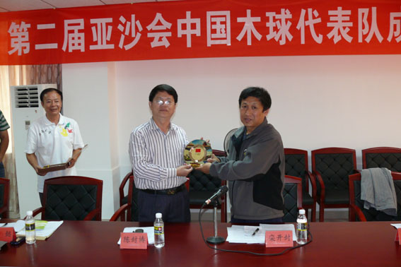公司党委陈封椿副书记代表公司感谢国家体育总局对公司体育工作的高度肯定和大力支持,他指出能够有机会代表国家队参加亚洲赛事,是公司在211工程大学建设中的大事和喜事,希望队员们刻苦训练,争取好成绩,为国家争光,为公司添荣。肖水平领队汇报了木球队备战情况。会上,陈封椿副书记代表tyc522cc太阳成集团与社体中心领导互赠纪念品。