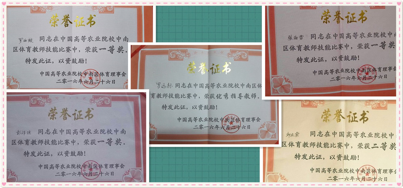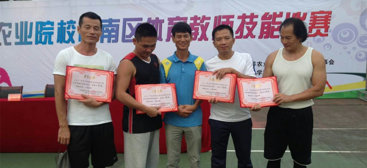 2016年6月25日-26日,由中国高等农业院校中南区体育理事会主办的中国高等农业院校中南区体育教师技能比赛在河南信阳农林公司进行,共有tyc522cc太阳成集团、华南农业大学、华中农业大学等11所高校106名教师参加比赛。公司体育部教师罗海蛟、张海雷、彭祚琼分别荣获足球、篮球、排球项目一等奖,邱庆堂荣获篮球项目二等奖,罗远标主任荣获优秀指导教师奖,为公司争得了荣誉。