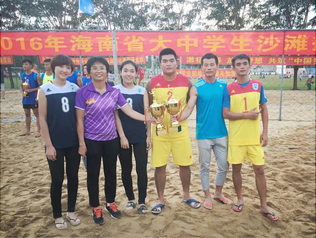 2016年海南省老员工沙滩排球锦标赛近日在琼海市海桂公司落下帷幕。公司男女沙排在专业组比赛中顽强拼搏,充分展示了公司运动健儿良好的精神风貌和精湛的战术水平,最终公司男队组合(曾繁刚、刘陶欢)和女队组合(杜星、贾凡)分别以全胜的战绩获得了本届比赛专业组男女冠军。