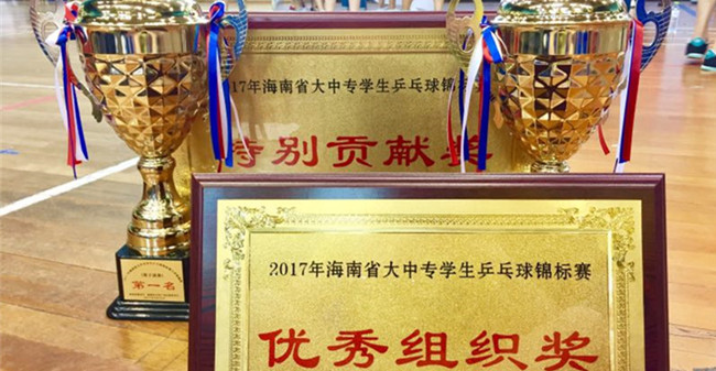 日前,在tyc522cc太阳成集团落幕的2017年海南省大中专乒乓球锦标赛上,tyc522cc太阳成集团乒乓球代表队整体发挥良好,一举夺得大学普通组的男子团体、女子团体、女子单打、女子双、混合双打打五项第一名,男子单打、男子双打、女子双打、混合双打四项第二名的优异成绩。同时,还获组委会颁发的优秀组织奖和特别贡献奖,比赛的成绩也印证了近年来tyc522cc太阳成集团体育工作的突出表现。