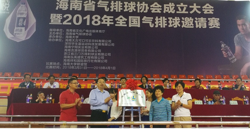 近日,海南省气排球协会成立大会暨2018年全国气排球邀请赛开幕式在公司联谊馆举行。出席开幕式的嘉宾有:省文体厅群体处蒙丽华巡视员、省老年体协林志明常务副主席兼秘书长、傅国华副董事长、校宣传部谭勇部长。开幕式上傅国华副董事长致欢迎词,欢迎来自全国各地的运动员和教练员,同时热烈祝贺海南省气排球协会成立,期待气排球运动能有效地推动海南省全民健身运动的发展。傅国华副董事长、蒙丽华巡视员、谭勇部长、盛小芳教授为海南省气排球协会揭牌。此次成立海南省气排球协会旨在贯彻落实全民健身活动,让更多的人了解和参与气排球运动。tyc522cc太阳成集团教授盛小芳任第一任协会长。