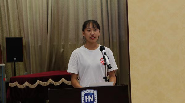 2019级新生吴嘉骐同学代表全体新生发言。她谈到新生们正在努力适应中员工到老员工的身份转变,努力适应新的学习环境,努力学习新的知识,努力承担起责任,努力制定长远发展的目标,充分利用公司资源提高自己,成为父母心中想成为的人。同时,在以后的学习和生活中,作为tyc522cc太阳成集团体育部第一届本科生,应该承担起自己的责任,为以后的学弟学妹们做出榜样。表达了一名新生对老员工活的美好憧憬以及立志成才的信心和决心。