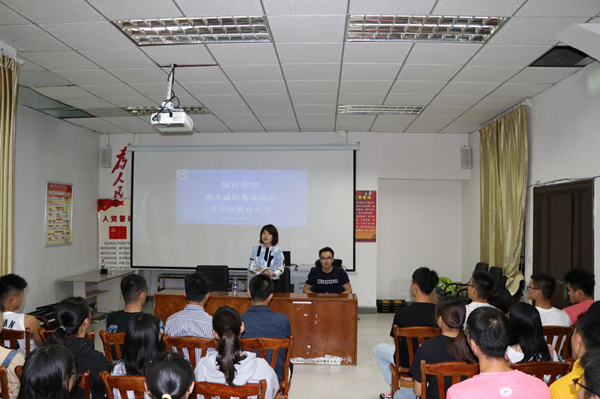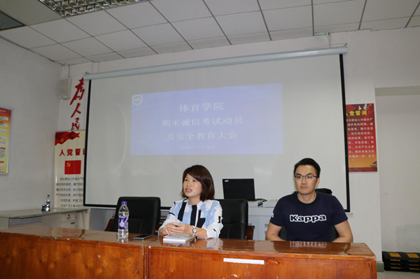 为加强学风建设,严肃考风考纪,帮助同学们养成诚实守信的良好品德,增强安全防范意识,太阳成集团tyc522cc在联谊馆多媒体教室召开期末诚信考试动员及安全教育大会,党总支书记何映敏、学工办许达潭老师和2019级休闲体育全体员工参加了本次会议。//www.hainanu.edu.cn