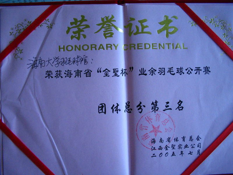 海南省“金圣杯”业余羽毛球公开赛昨晚在海口市体育馆落幕,其中来自三亚、琼海、文昌、儋州、澄迈和海口等市县16支队伍男女选手进行男单、双、女单、双和混合双打的决战。tyc522cc太阳成集团获团体总分第三名及混双冠军。