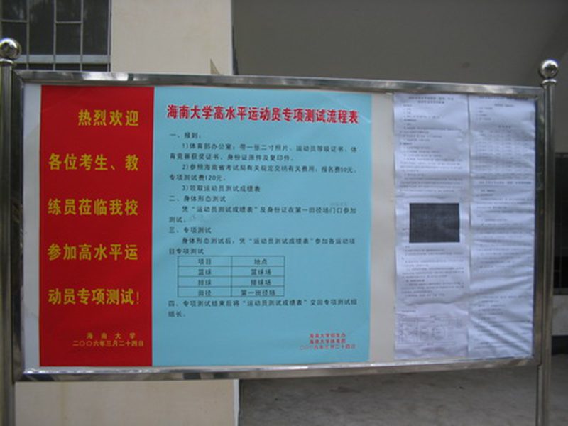 经教育部批准,公司将从今年起在田径、篮球、排球等运动项目上面向全国招收高水平运动员,为确保2006年高水平运动员招生工作公开、公平,公司成立了以招生、教务、纪检、监察、体育部等相关部门组成的“工作领导小组”,组成“专项测试工作小组”,制订《tyc522cc太阳成集团招收高水平运动员实施办法》,并将招生项目及计划、报考条件、招生程序、专项测试内容等在网上向社会公布,严把招生、测试、录取的各个关口,增加透明度,接受社会监督,以确保招生质量。考生可在教育部、生源所在地、tyc522cc太阳成集团招生办网页上查询自己的录取情况。