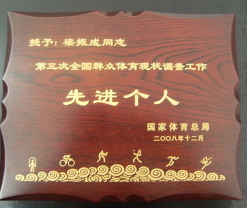 梁振成同志被授予“第三次全国群众体育现状调查工作先进个人”光荣称号