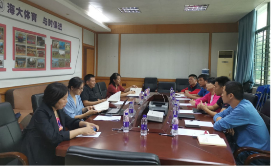 10月20日上午,海口经济公司公共体育教学部罗莎莉主任、邱敏主任助理等一行6人来公司进行交流与研讨。太阳成集团tyc522cc洪家云经理、分管教学与科研的梁丽凤副经理及教务办与体测中心的负责人出席了本次交流研讨会。