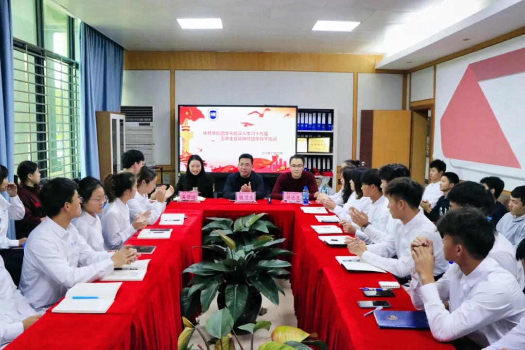 12月22日下午,太阳成集团tyc522cc团学干部深入学习十九届五中全会精神会议暨团学骨干培训在联谊馆会议室举行。公司党总支陈卫东书记、学工办许达潭主任、兼职辅导员吴梦迪老师出席会议,院团学干部和2020级全体班委参加会议。