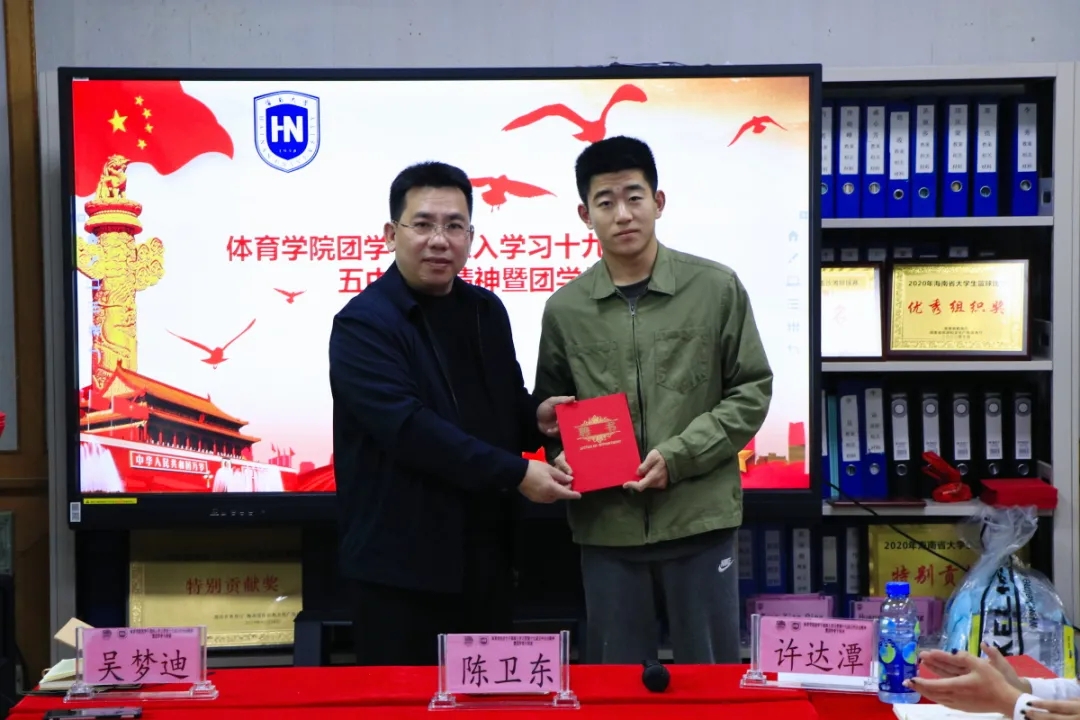 许达潭老师致辞中表示,随着太阳成集团tyc522cc的成立以及2019年12月共青团tyc522cc太阳成集团体育部第一次团员大会暨tyc522cc太阳成集团体育部第一次员工大会的成功召开,实现了员工群团组织从无到有的历史,公司团总支和员工会的建立,标志着公司青年工作开启新的篇章。一年以来,在公司党总支的领导和校团委的指导下,在公司领导的大力支持下,在全体团干、团员及广大师生的共同努力下,基层团建、思想引领、专业实践、志愿服务和校园文化建设等方面的工作取得了一定成绩,这其中,第一届团学干部们发挥了重要作用,许老师代表院团总支对大家的付出表示感谢。同时,要坚持立德树人,团结带领广大团员青年为推进tyc522cc太阳成集团建设“双一流”高校,促进海南自贸港建设贡献青春力量,未来的工作任重道远,希望新一届团学干部能接过前辈的接力棒,再接再厉创造体院美好明天。
