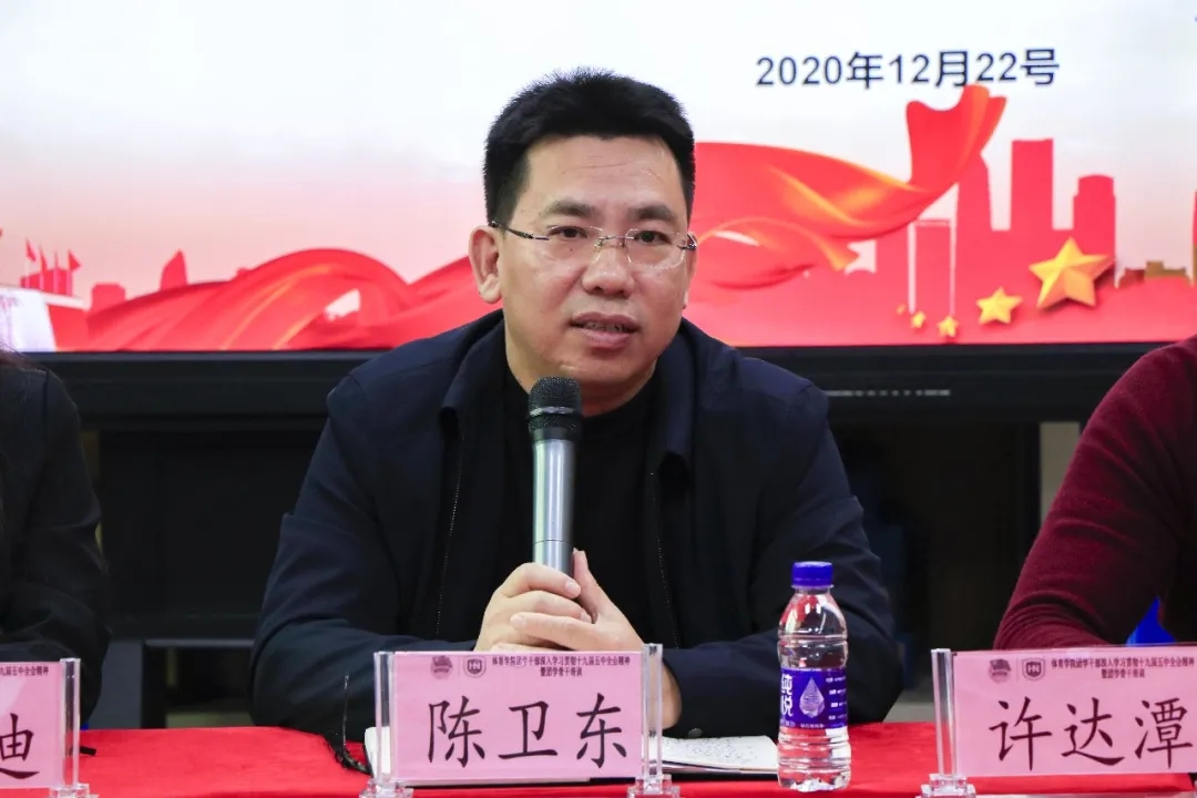 陈书记对第一届团学工作给予了肯定,并代表公司党总支和全体院领导对大家为公司发展做出的贡献表示感谢,同时对新当选的团总支、员工会和2020级班委干部们表示祝贺。他表示,团学建立之初不易,历经探索和发展,组织架构逐步健全和完善,期望同学们在现有的基础上能尽快总结经验、推陈出新,并加强与其他公司团学组织的交流合作,发扬体院精神,打造精品团学。