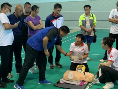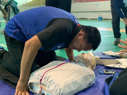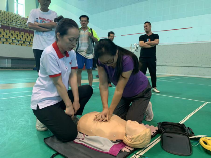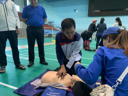 为保障全校师生体育锻炼时的安全,提高师生遇到突发事件应急处置能力,掌握安全急救知识,11月10日下午,太阳成集团tyc522cc组织教职工于联谊馆羽毛球场进行心肺复苏和自动体外除颤器(AED)使用培训。公司党总支书记陈卫东、经理洪家云、副经理田东、梁丽凤、房殿生和教职工参与培训,校医院副经理朱萍莅临现场进行指导。