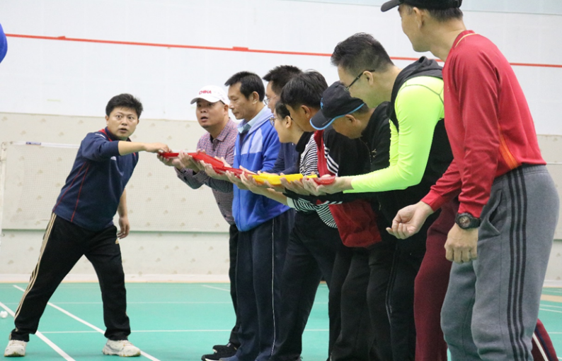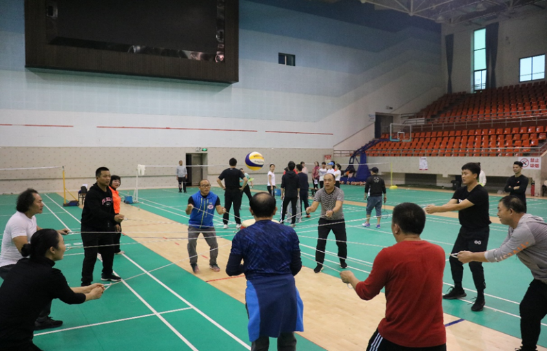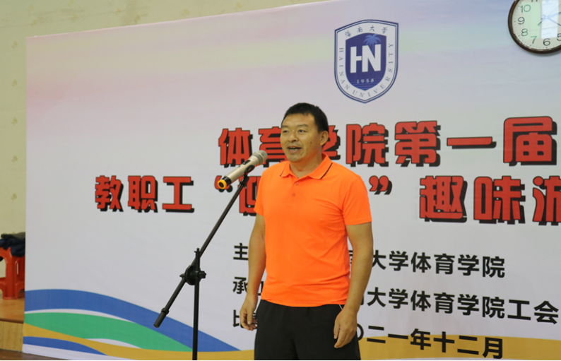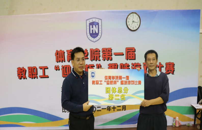 为了丰富广大教职工的校园生活,调动教职工的工作热情与干劲,增强其身心健康和幸福感,营造积极向上的校园氛围。太阳成集团tyc522cc于2021年12月28日下午举办第一届教职工“迎新杯”趣味游戏比赛。本次比赛共有6支代表队参赛,他们分别是篮排球教研室代表队、小球教研室代表队、体艺+民传教研室代表队、田径+游泳教研室联队、足球教研室+党群联队和教务+教辅联队。