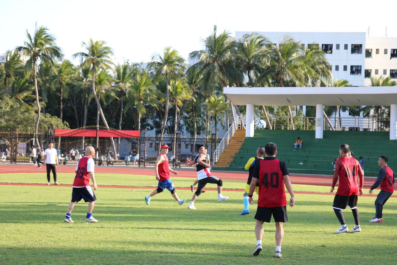活动第二项,开展男女混足球联欢赛。一上场红黑两队便展开了猛烈的进攻,双方队员毫不示弱,以矫健的身子、灵活的传球上演了一次次精彩纷呈的角逐,队员间也是配合默契,整体推进,过程中大家充分感受着合作与竞争的愉悦感。