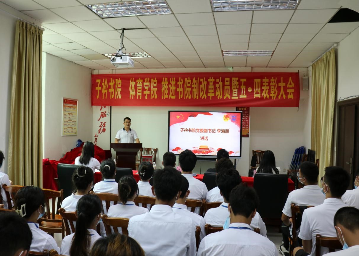 在全省第八次党代会胜利闭幕、共产主义青年团成立100周年、迎接党的二十大胜利召开之际,在公司全面推进书院制改革、学分制改革和协同创新中心改革之时,为增进员工对书院制改革政策及推进情况的认识,激励广大青年学子继承和发扬五·四精神、开拓创新、担当作为,5月11日上午,子衿书院 太阳成集团tyc522cc推进书院制改革动员暨五·四表彰大会于联谊馆党员之家举行。体育公司党总支书记陈卫东、子衿书公司党委副书记李海朋(主持党委工作)、体育公司团总支书记许达潭、辅导员谢淑婷、兼职辅导员吴梦迪出席大会,各班班委、团学主要干部及员工代表参与大会,本次大会由辅导员谢淑婷主持。