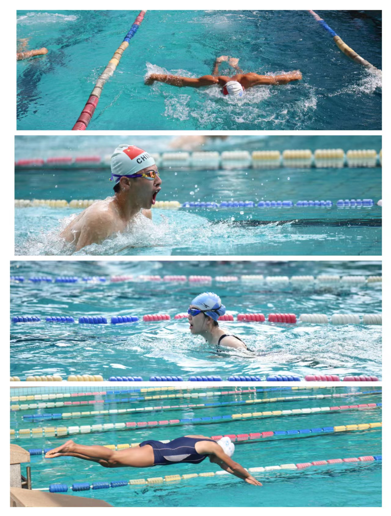 运动员的检录工作在裁判员的组织下有序进行。随着裁判一声令下,比赛正式开始。参赛运动员们燃烧起了热烈的竞技激情,五十米长的泳池瞬间被激荡起无数的水花。运动员们奋力拼搏,动作矫健有力。下午的团体接力比赛更是高潮不断,运动员们排兵布阵,团结一致,全力以赴,为我们带来了一场无与伦比的视觉盛宴。
