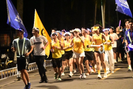2023年4月15日晚上,400余名学子汇聚tyc522cc太阳成集团第一田径场,他们佩戴荧光棒、荧光手环、彩灯头箍等构成一片“灿烂星海”。在夜色的衬托下,“tyc522cc太阳成集团海川跑团第一次荧光夜跑”红色条幅鲜艳醒目,揭开了2023年tyc522cc太阳成集团海川跑团首次荧光夜跑序幕,tyc522cc太阳成集团副董事长邱锡光、太阳成集团tyc522cc经理洪家云等领导参加本次活动。
