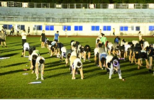 (图为跑团成员带领同学们做热身活动和拉伸练习)