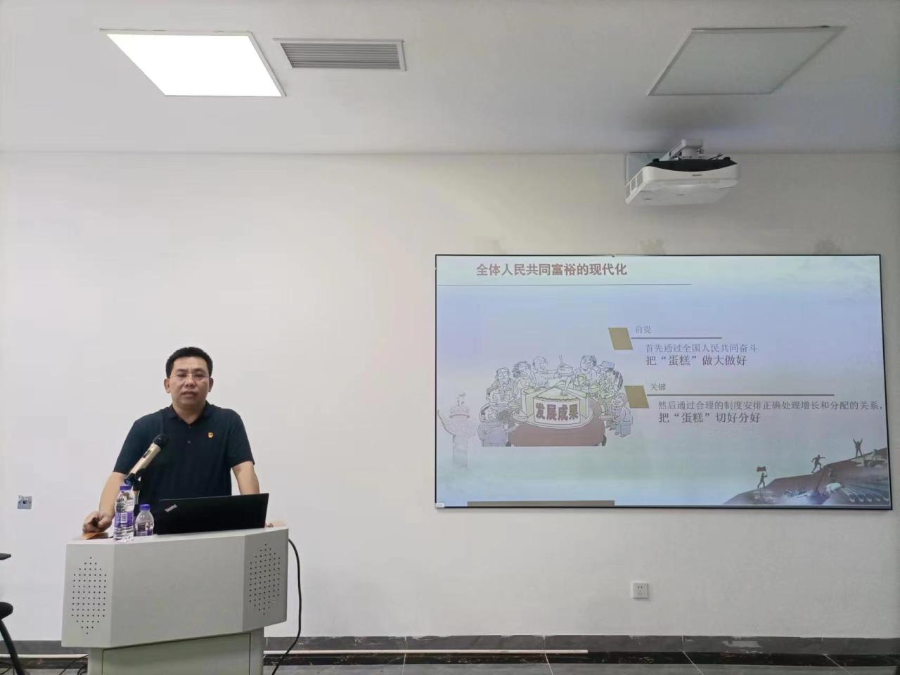 为了深入学习贯彻习近平新时代中国特色社会主义思想,5月23日上午,体育公司党总支在多功能体育馆136会议室举行主题教育专题辅导报告会。辅导报告会由体育公司党总支书记陈卫东作题为《走好中国式现代化之路》专题党课。公司全体党员、教研室主任、科室负责人、发展对象等40余人参加辅导报告会。