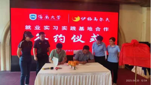 当天下午,陈卫东书记率队赴伊格高尔夫公司红树湾基地与伊格高尔夫公司签订就业实业实践基地协议,并就下一步实习实践活动的开展、干部培训等内容进行了探讨和交流。陈卫东书记在签约仪式上表示,共建老员工就业实习实践基地,是地方企业与高校建立全链条培养机制的重要举措,双方通过此次携手共建,将建立起常态化交流合作机制,以实习实践等多种形式,为员工了解地方经济发展和人才需求提供机会,对于在校生的专业技能提升和毕业生的就业起到了十分积极的作用。