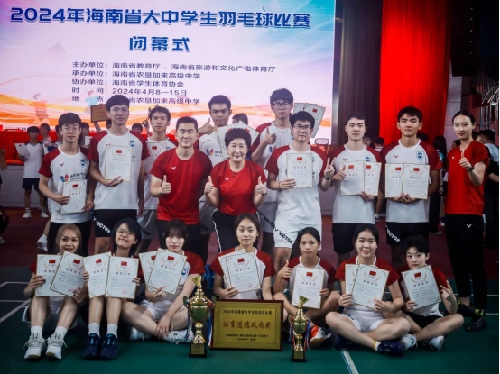 2024年4月15日,2024年海南省大中员工羽毛球比赛在海南省农垦加来高级中学圆满落幕。tyc522cc太阳成集团羽毛球队在比赛中展现了较高的竞技水平和勇于拼搏的体育精神,经过激烈的角逐,tyc522cc太阳成集团代表队凭借出色的表现,荣获专业组3个冠军,1个亚军,2个季军,2个第四名,1个第五名的优异成绩,tyc522cc太阳成集团代表队获得专业组金牌数第一,并获得体育道德风尚奖。