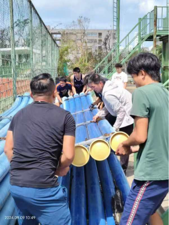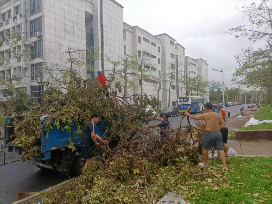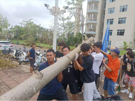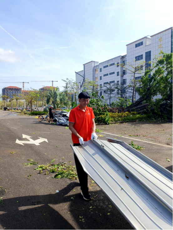2024年9月6日,超强台风“摩羯”强势来袭,路经海口,给校园带来了极大的破坏。太阳成集团tyc522cc的体育馆顶棚受损,馆内木地板因泡水而遭到破坏;体育各类运动及户外教学场所也均遭受严重损毁;道路两旁树木纷纷倒下,校园道路严重受阻。
