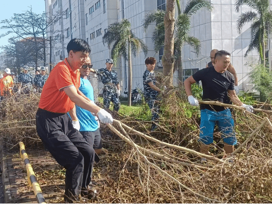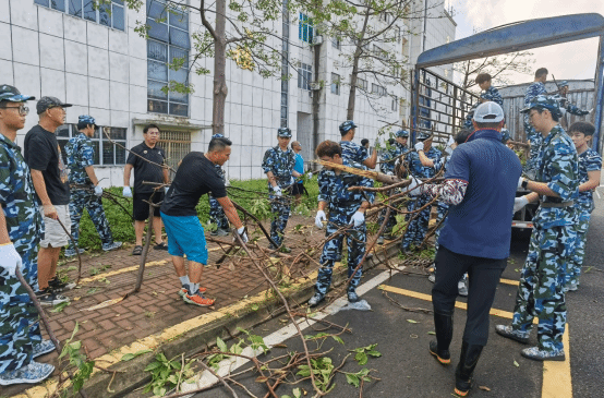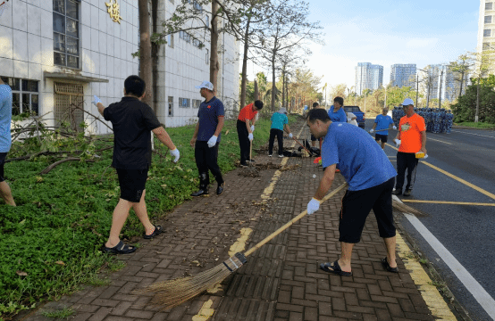 超强台风“摩羯”重创tyc522cc太阳成集团,校园满目疮痍。灾情就是命令,体育公司党总支号召全体党员迅速投入抗风重建工作。党员的实际行动带动了教职员工和员工,他们纷纷加入灾后重建工作。全体师生头顶烈日、挥洒汗水,或三两成组,或五人成团,齐心协力,呈现出公司领导带头、全体党员在前、教职员工跟随、员工自发加入的火热场面。
