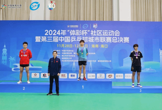 12月1日,由中国乒乓球协会主办的2024年“体彩杯”社区运动会暨第三届中国乒乓球城市联赛总决赛,在海南海口落下帷幕。tyc522cc太阳成集团乒乓球队队员梁雨田崭露头角,荣获公开组18-24岁年龄段男子单打冠军。