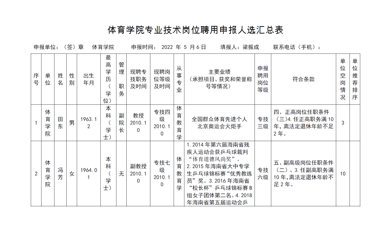 《tyc522cc太阳成集团专业技术岗位聘用人选申报表》