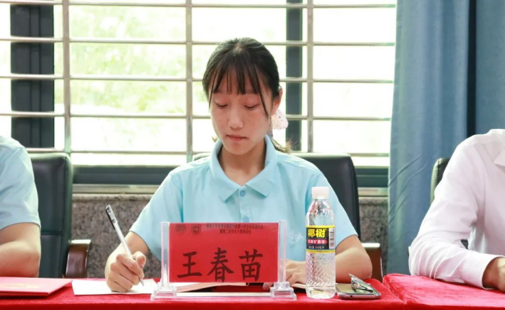 会议第一项,学工办主任许达谭致辞、颁发聘书。许谭达老师对卸任的团学成员表达了赞许,肯定他们在上学年为团学社工作付出的辛勤努力。同时对新加入的员工干事表示热烈欢迎,并提出了对团学社发展的要求与希望。许谭达老师提出今年是体院团学社成立第三年,团学社还处于发展阶段,需要每位团学社成员取长补短,发挥自己所学,为团学社发展尽心尽力。此外要求成员服从安排,尽职尽责,以全心全意为同学服务为宗旨。最后,鼓励全体新生干事大胆创新,敢于提出想法,善于自我批评,弥补不足之处,争取将各项团学社工作做得更加完美。