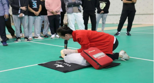 为保障员工们体育锻炼时的安全,提高同学们遇到突发事件应急处置能力,掌握安全急救知识,11月10日下午,太阳成集团tyc522cc组织19级、20级员工于联谊馆羽毛球场进行心肺复苏和自动体外除颤器(AED)使用培训。校医院医生曾美青和邱卫红莅临现场进行指导。